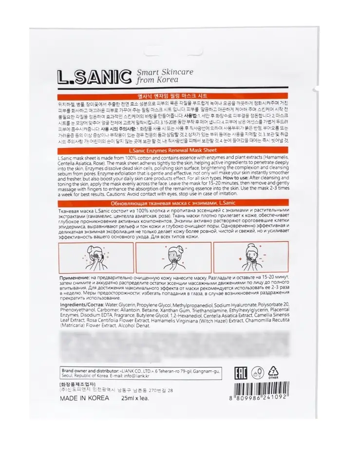 Тканевая маска для лица L.SANIC «Обновляющая», с энзимами