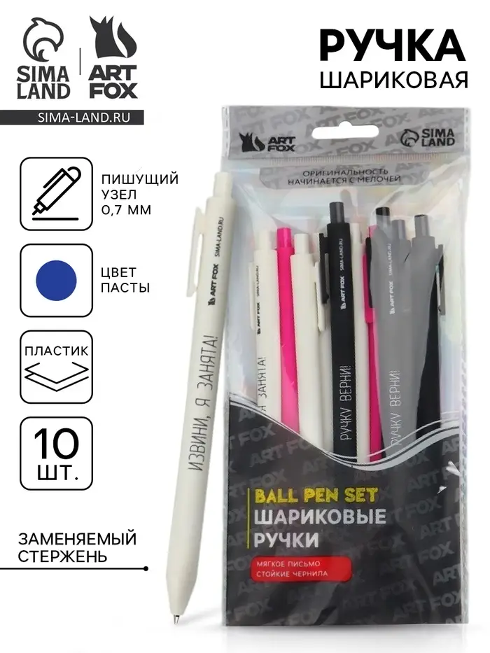 Ручка шариковая, синяя паста, 0.7 мм, автоматическая, набор 10 шт. «Дерзкие»