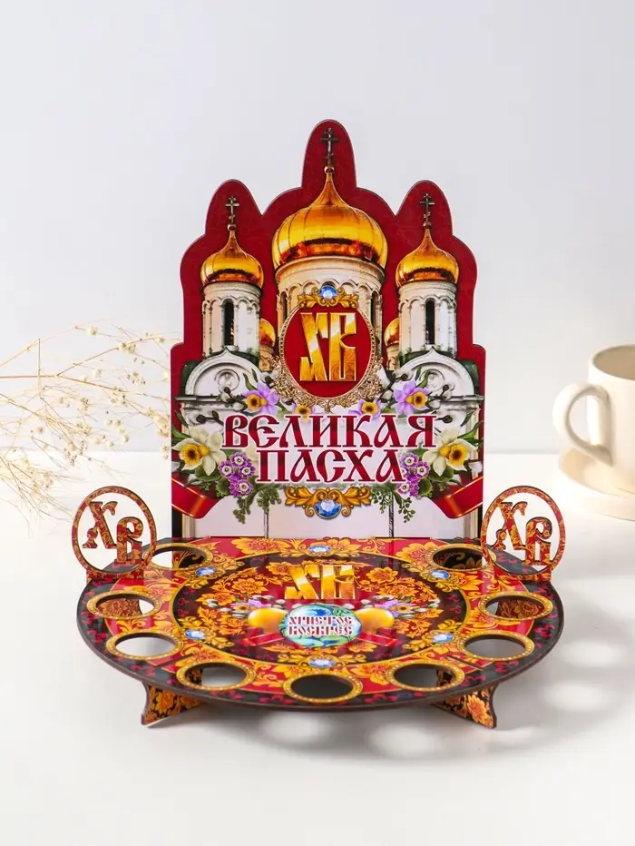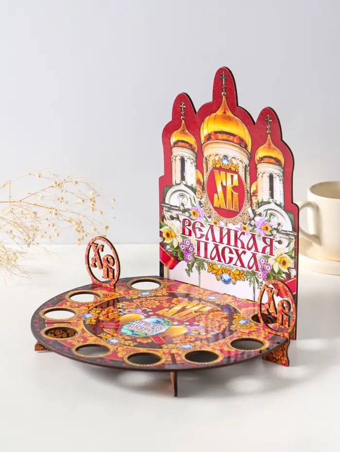 Подставка пасхальная для кулича и 9 яиц красная. 25,5х22х25 см, под кулич: 15,5 см