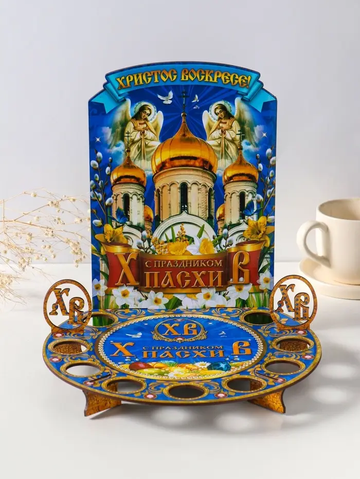 Подставка пасхальная для кулича и 9 яиц синяя. 25,5х22х25 см, под кулич: 15,5 см
