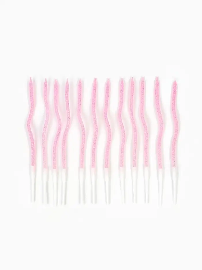 Свечи для торта "Серпантин" 10 штук, блестящий розовый