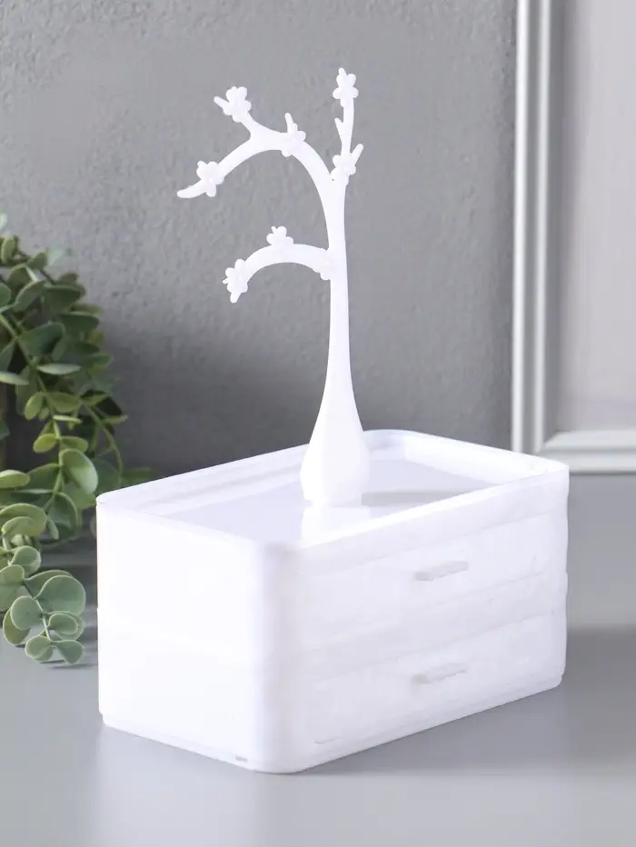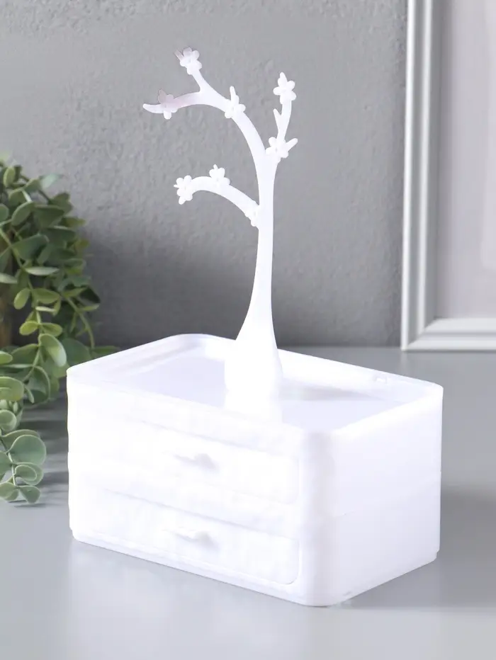 Шкатулка универсальная "Цветущее дерево", 2 яруса, 17,2х10,5х24 см, цвет белый