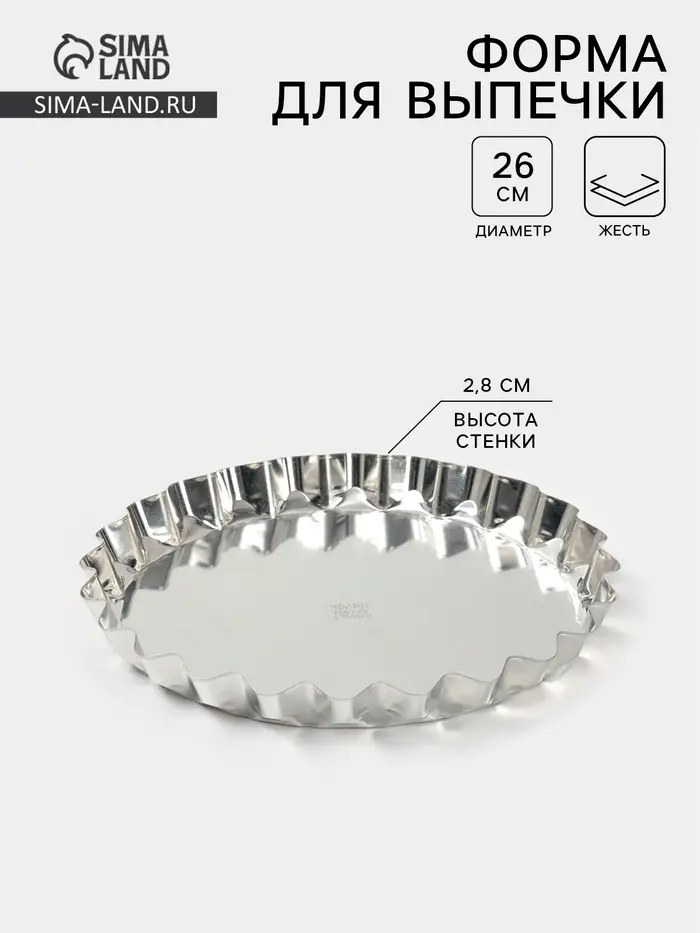 Форма для выпечки, d=26 см, h=2.8 см, жесть, серебристая