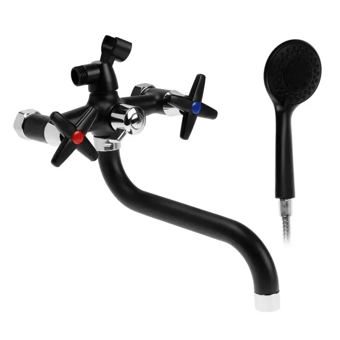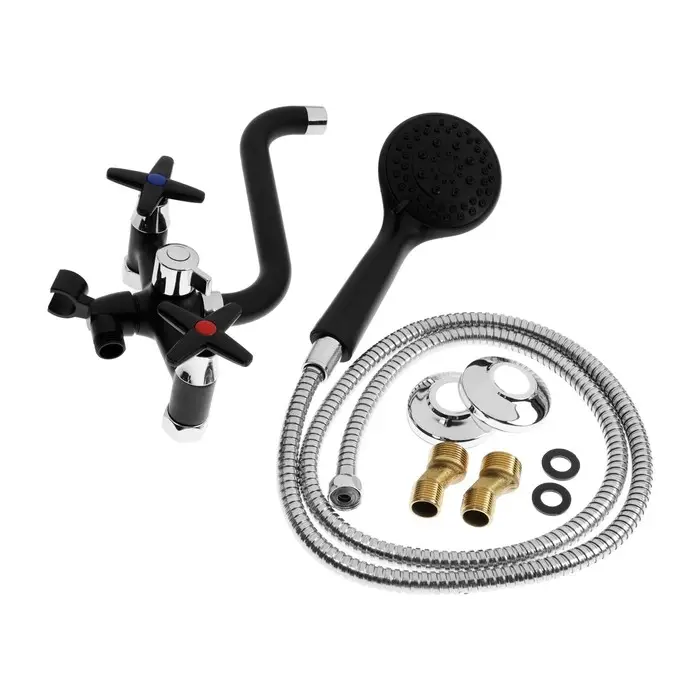 Смеситель для ванны ZEIN Z2494, излив 20 см, кран-букса 1/2", с душ набором, черный/хром