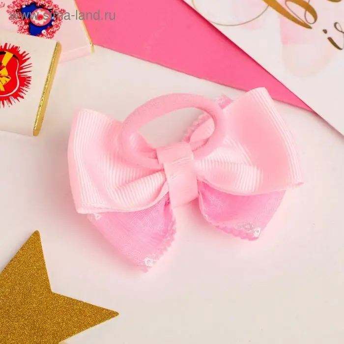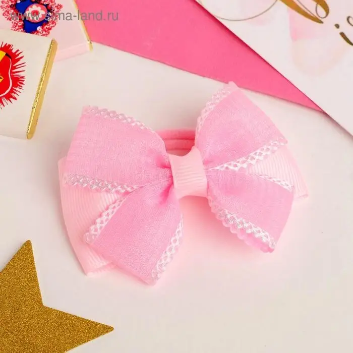 Резинка для волос бант «Маруся», клеточка, 8.5 см, розовая