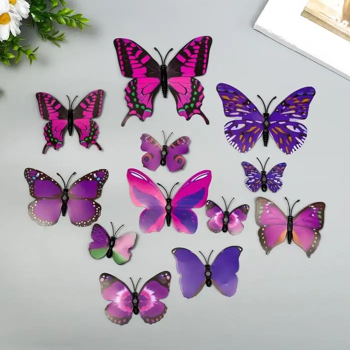 Магнит на холодильник пластик «Бабочки одинарные крылья фиолетовые», набор 12 шт.