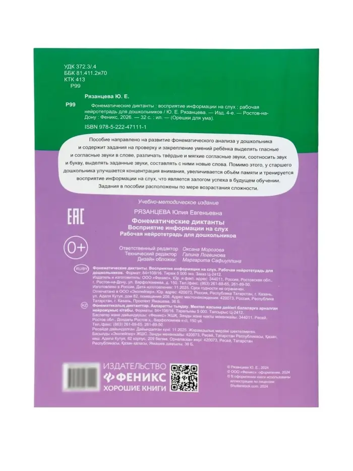 Фонематические диктанты, восприятие информации на слух, рабочая нейротетрадь для дошкол. Рязанцева Ю