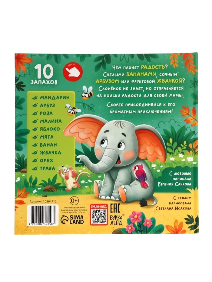Эта книга превращает чтение в полное погружение. Вместо слов «это бабушкин пирог» — настоящий аромат корицы и теста. Вместо «лето на море» — солёный бриз. Так формируются яркие, многомерные воспоминания, а речь обогащается: «Пахнет, как у бабушки», «Это запах праздника!»