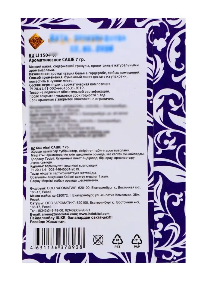 - Лёгкость использования: достаточно просто разместить саше среди вещей или поместить его в нужное место.