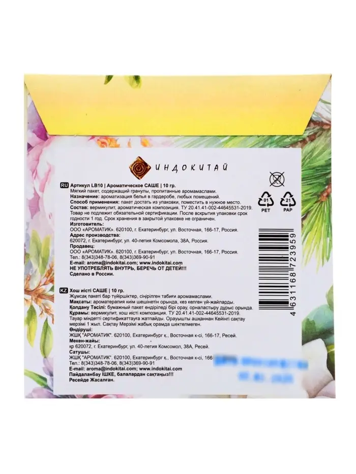 - Простота использования: достаточно разместить саше в выбранном месте.