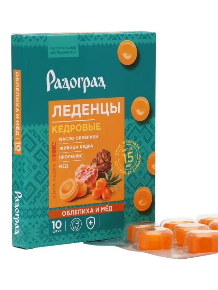 Карамель леденцовая «Облепиха и мёд», с живицей кедра и прополисом, блистер, 10 шт.