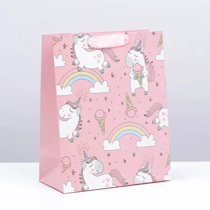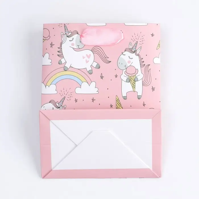 Пакет подарочный, упаковка, «Единорожки и радуга», 14 х 11 х 6.5 см