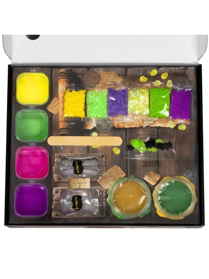 Набор для опытов «Меганабор для создания слаймов», своими руками, 10 фигурок и кристаллов