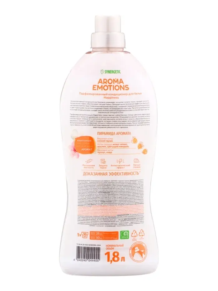 Кондиционер для белья парфюмированный SYNERGETIC миндаль, груша, жасмин, 1,8 л