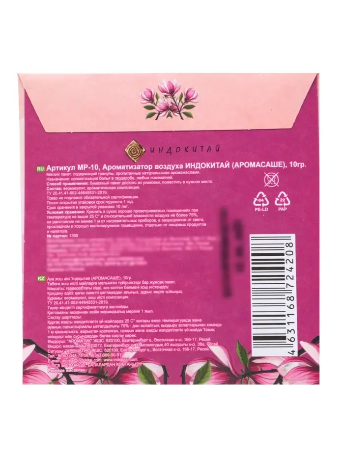- Простота использования: достаточно поместить саше в выбранное место.