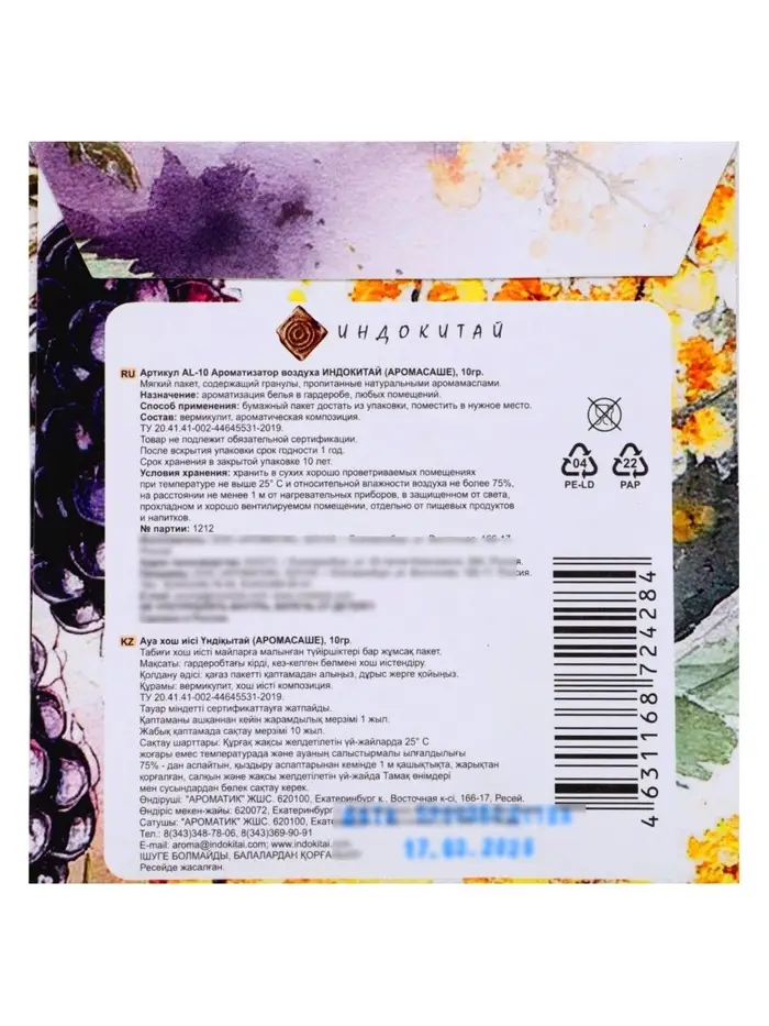 - Компактность и удобство: небольшой размер и аккуратная упаковка делают саше универсальным для любых пространств.