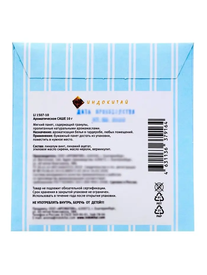 - Простота использования — достаточно разместить саше в выбранном месте.