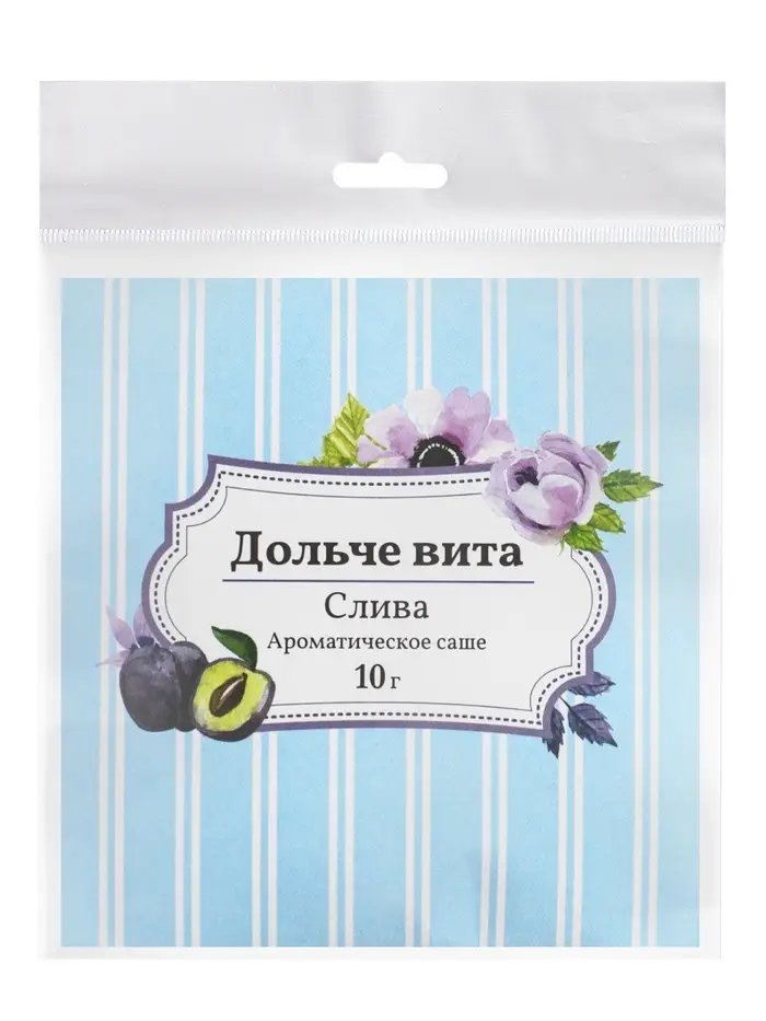 Тёплый аромат спелой сливы наполняет пространство мягкой сладостью и уютом, создавая приятное настроение и комфортную атмосферу. Аромасаше «Дольче Вита» станет отличным ароматическим дополнением для дома, офиса или автомобиля, помогая поддерживать свежесть и приятный запах вокруг вас.