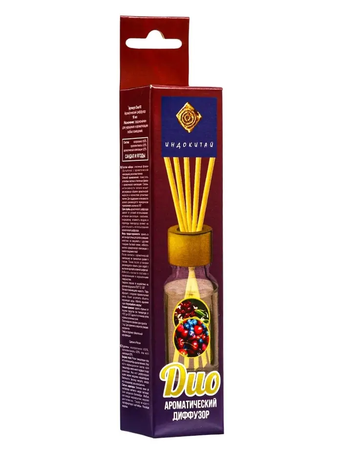 Погрузитесь в гармоничное сочетание древесной теплоты и свежей ягодной сладости с аромадиффузором Duo10 Сандал и Ягоды, 10 мл. Этот диффузор с палочками мягко и равномерно распространяет аромат, создавая атмосферу комфорта и умиротворения в любом помещении.