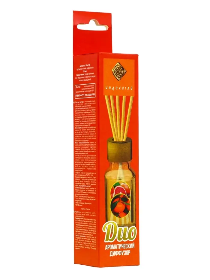 Наполните пространство свежестью и бодрящей фруктовой энергией с аромадиффузором Duo10 Грейпфрут и Мандарин, 10 мл. Этот диффузор с палочками мягко и равномерно распространяет цитрусовый аромат, создавая ощущение легкости, радости и солнечного настроения.