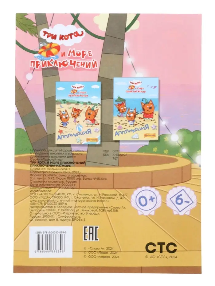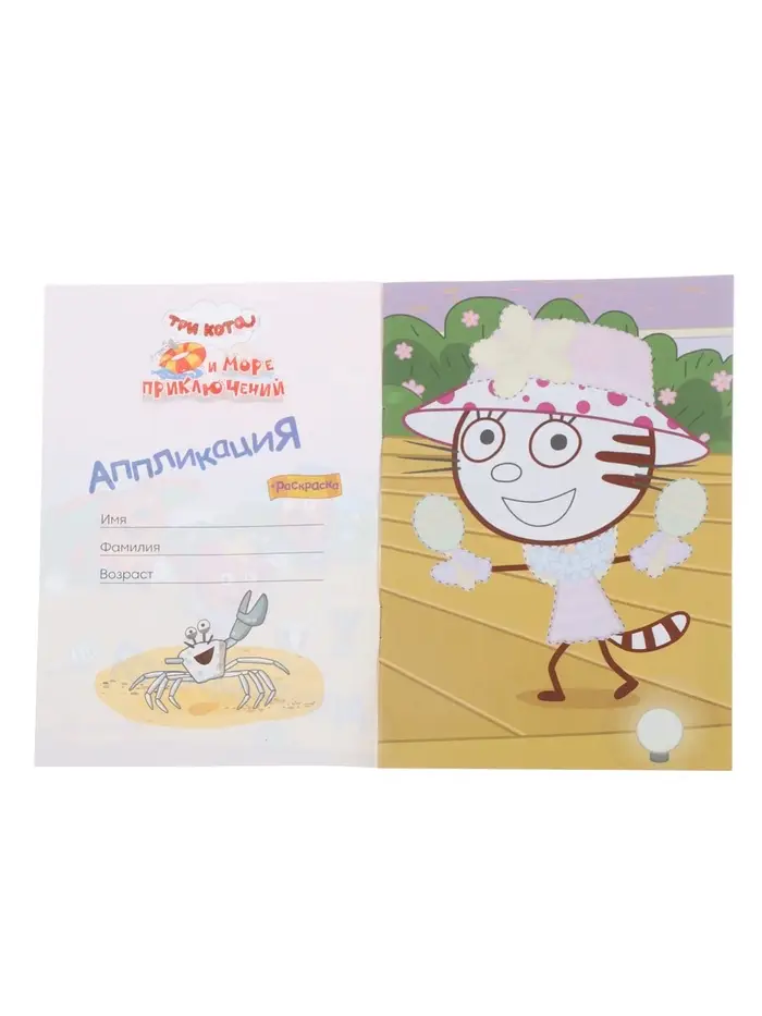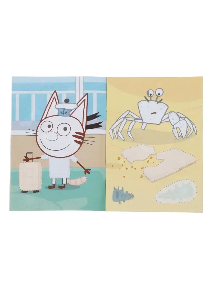 Аппликации с раскрасками «Три кота и море приключений. Приключения на море», А5, 14 стр.