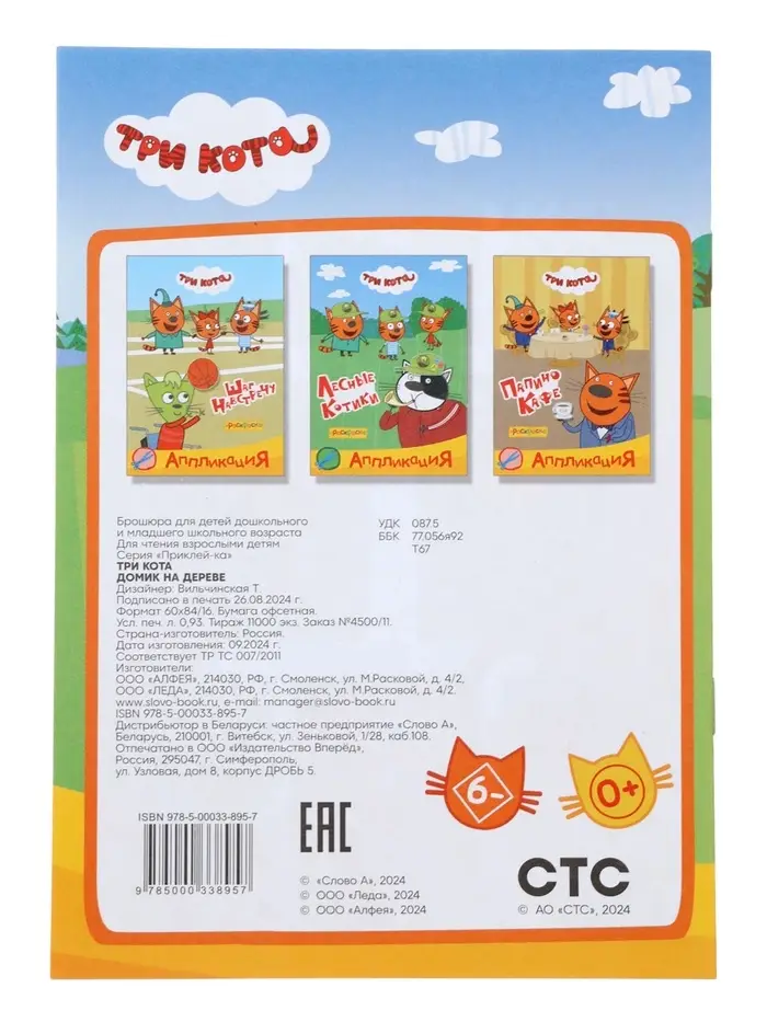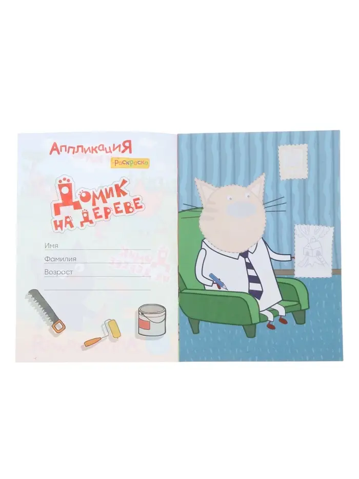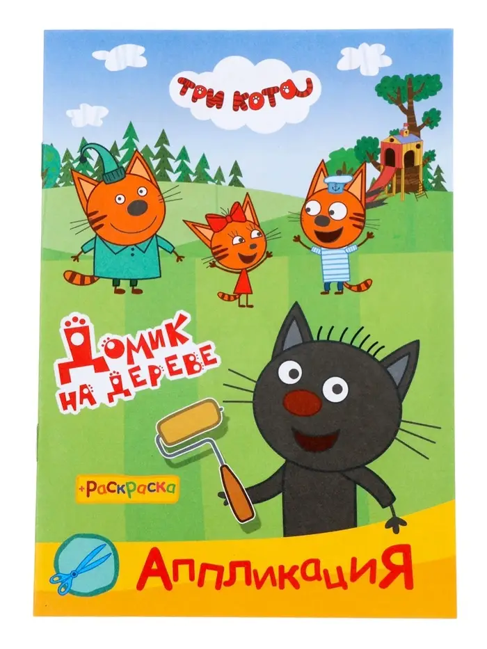 Аппликации с раскрасками «Три кота. Домик на дереве», А5, 14 стр.