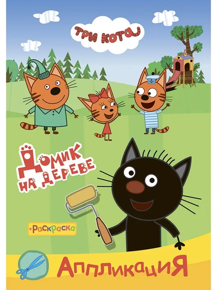 Аппликации с раскрасками "Три кота. Домик на дереве", А5, 14 стр