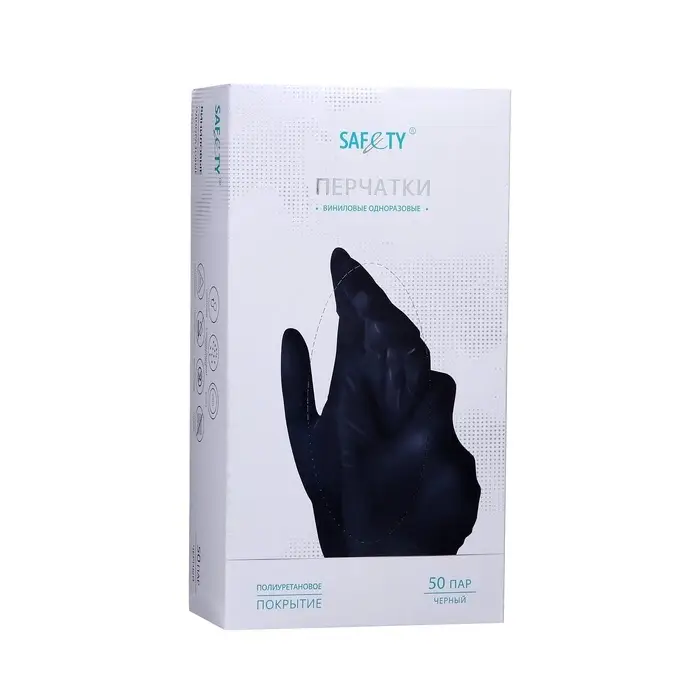 Перчатки виниловые Benovy, размер M, чёрные, 50 пар