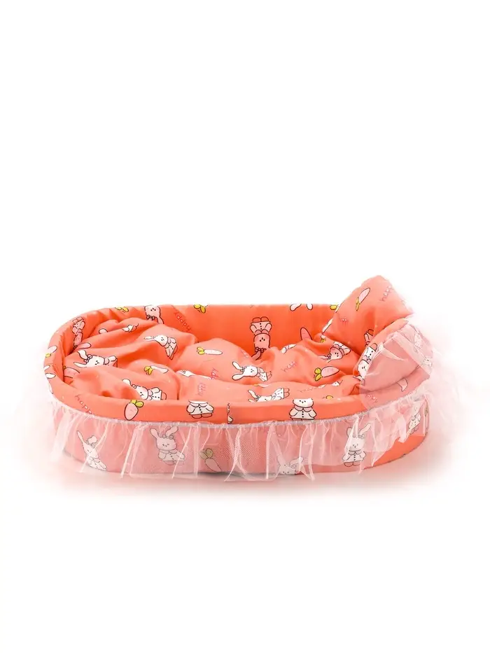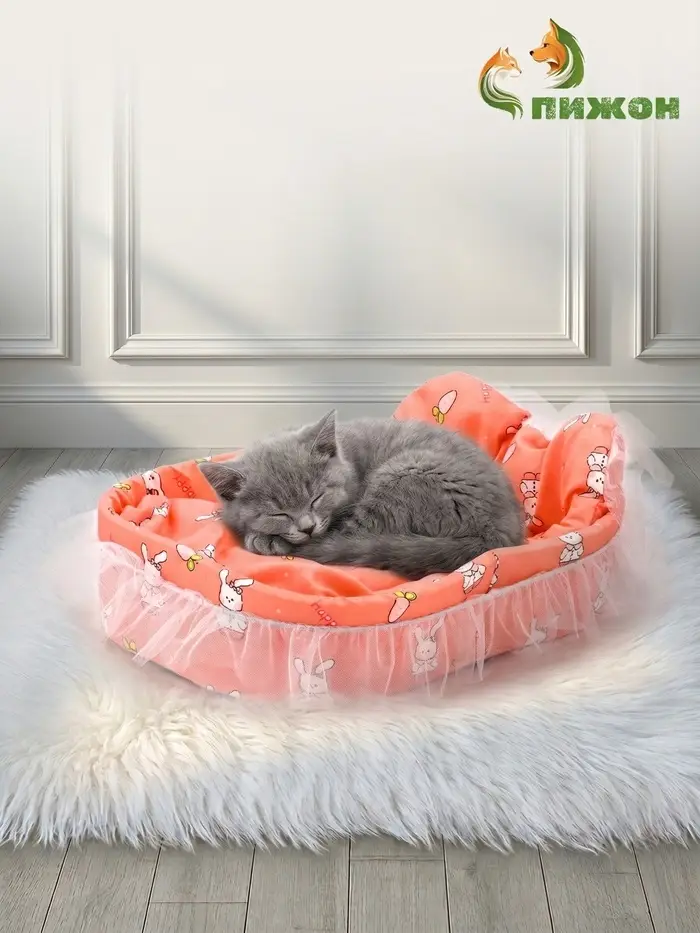 Мягкое гнёздышко, где питомец может по-настоящему расслабиться — после прогулки, игр или просто в тишине. Кроватка для животных размером 57×40 см выполнена в нежно-розовом цвете и имеет удобную овальную форму. Наполнитель из синтепона равномерно распределяет вес, а чехол из полиэстера мягко обнимает лапки и не вызывает раздражения.