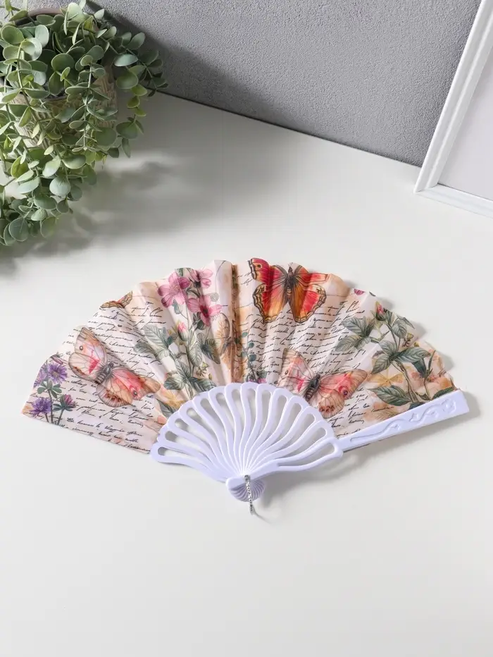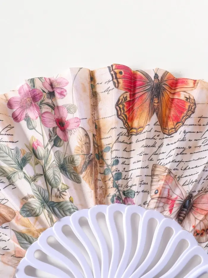 Веер складной «Бабочки, цветы и старые газеты», 22.5 см