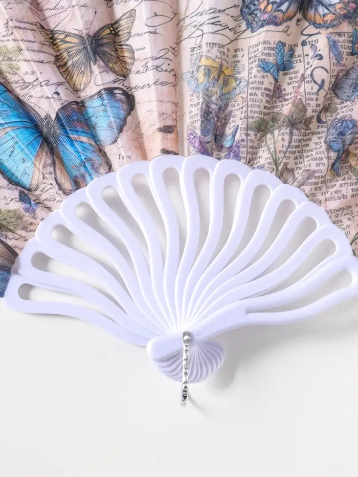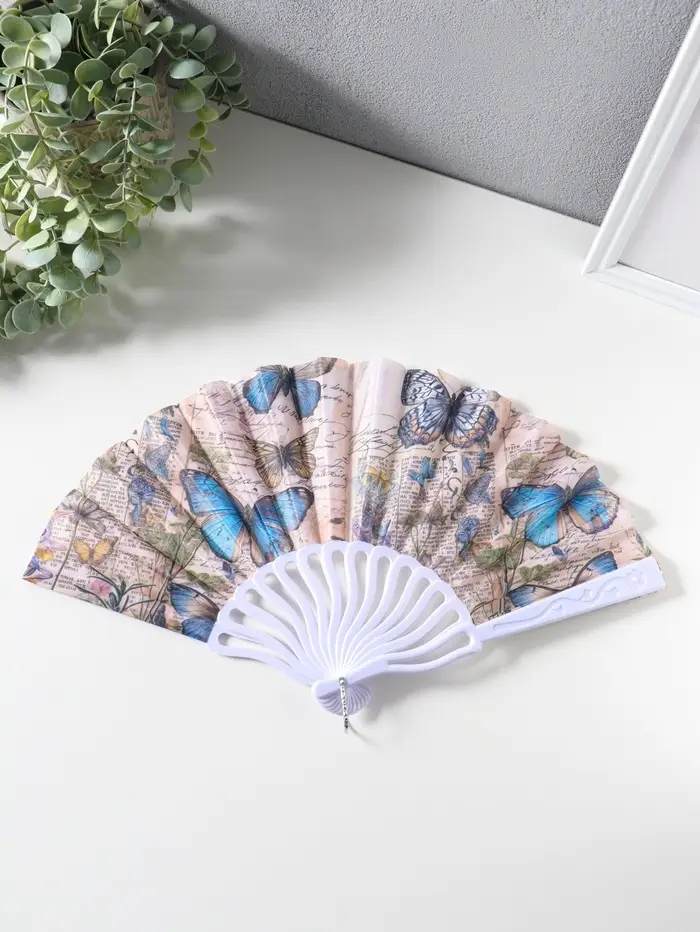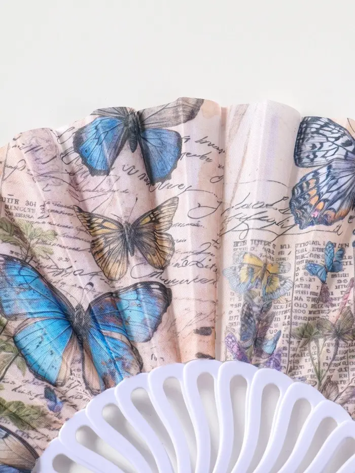 Этот складной веер с бабочками — элегантный аксессуар для прохлады и стиля. Его лёгкие пластиковые грани и нежный текстильный экран создают приятную прохладу в летний зной. Узор из порхающих бабочек на фоне, напоминающем старинную газетную страницу, добавляет образу лёгкую загадочность и винтажный шарм. Компактный размер делает его идеальным спутником для театра, прогулки или романтического ужина.