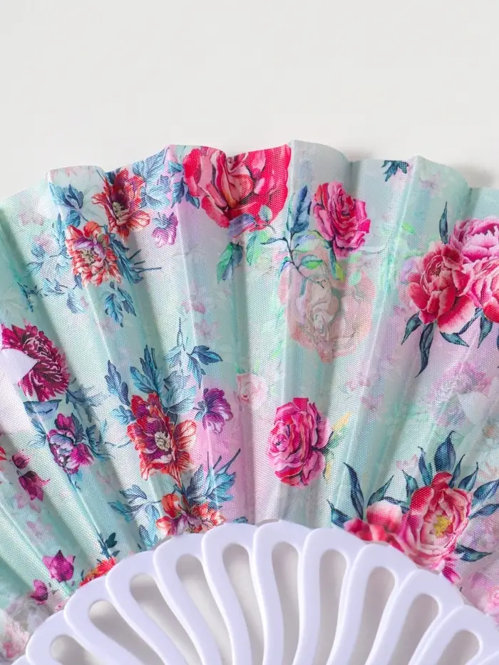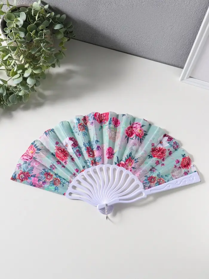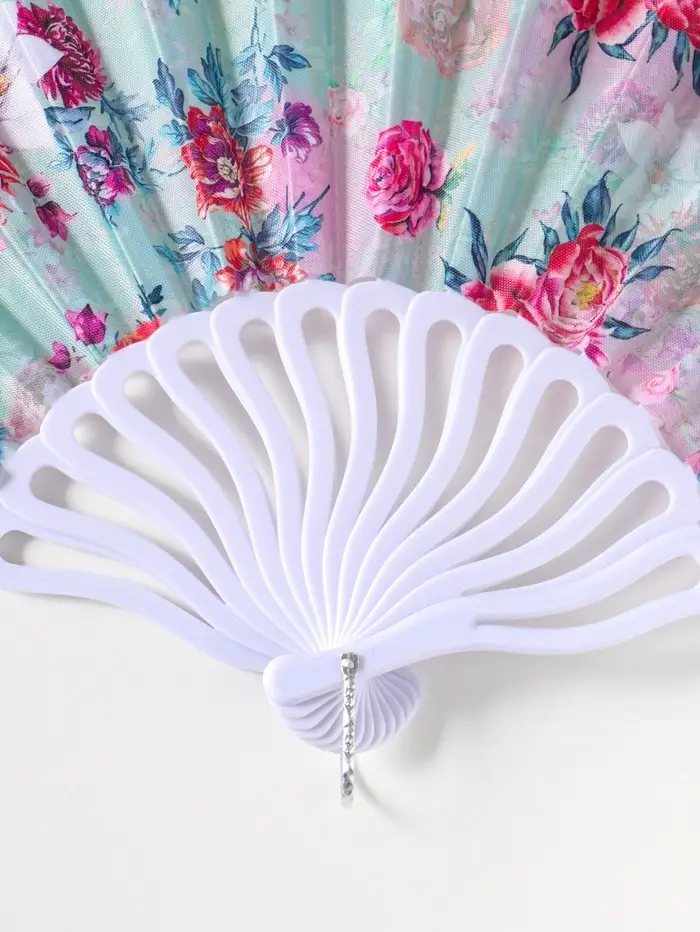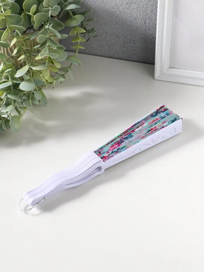 Этот складной веер с цветочным узором — элегантный аксессуар для жарких дней. Его лёгкие пластиковые пластины, обтянутые тканью, создают приятную прохладу одним движением руки. Веер компактно складывается, его удобно брать с собой в сумочке или даже в кармане.
