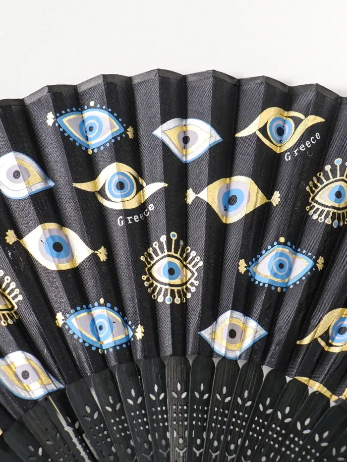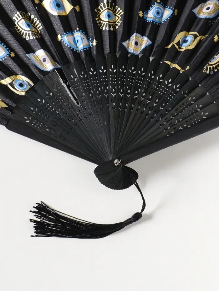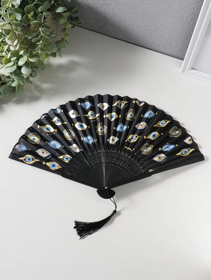 Веер складной с кисточкой «Глаза от сглаза», чёрный с золотом, 23 см