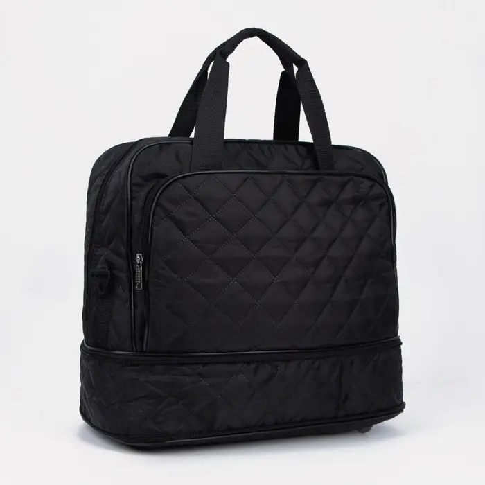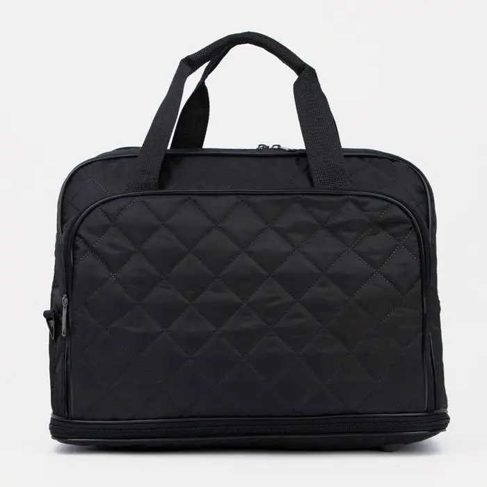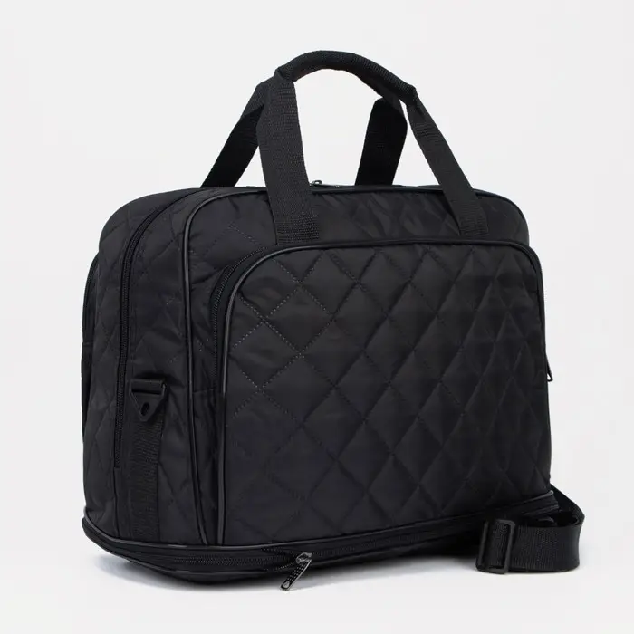 Сумка дорожная на молнии, с увеличением, наружный карман, длинный ремень, чёрная
