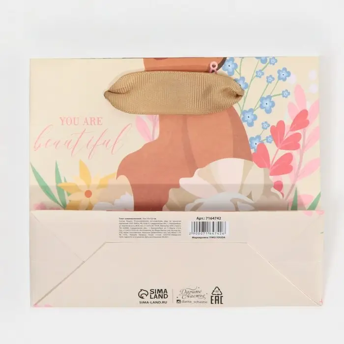 Пакет подарочный ламинированный, упаковка, «Beautiful», S 12 х 15 х 5.5 см