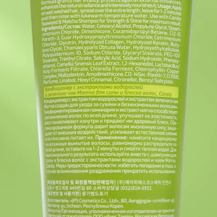 Кондиционер "Consly" с экстрактами водорослей и зеленого чая матча для силы и блеска волос, 25 мл