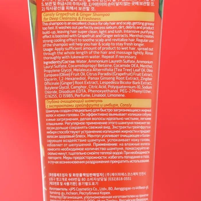 Глубоко очищающий шампунь, Consly, с экстрактами грейпфрута и имбиря, 250 мл