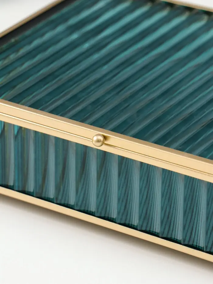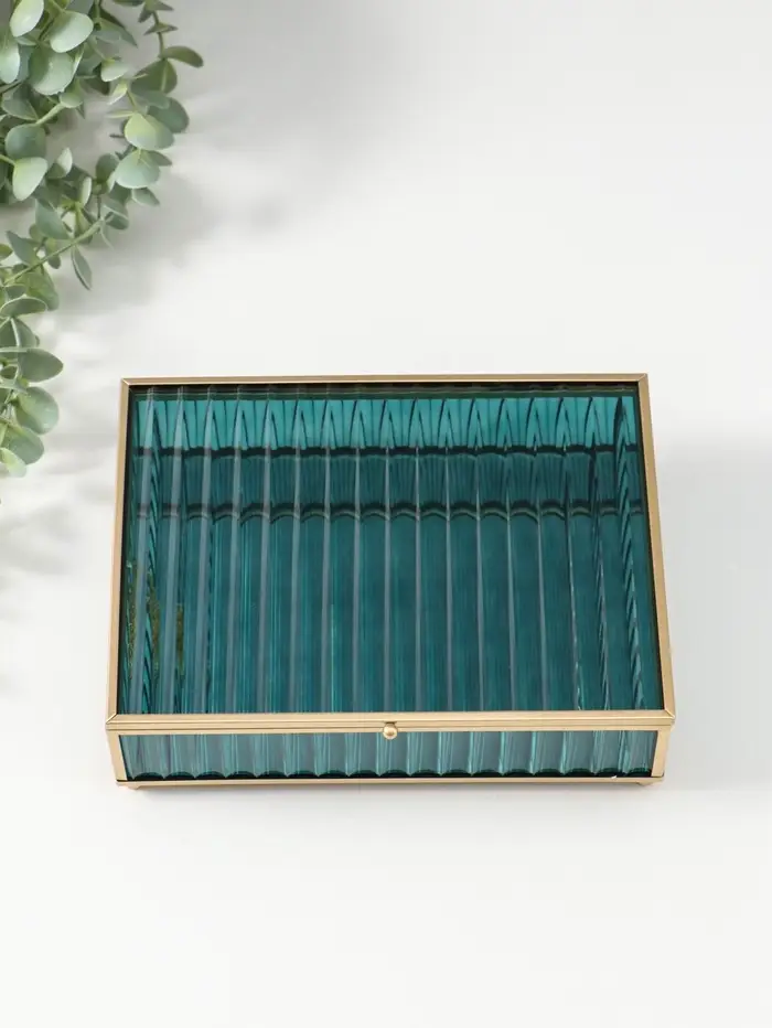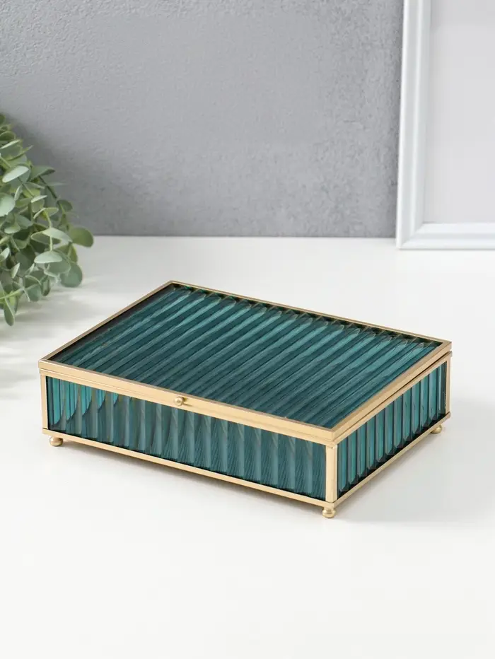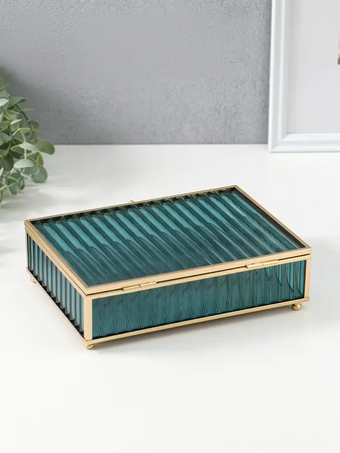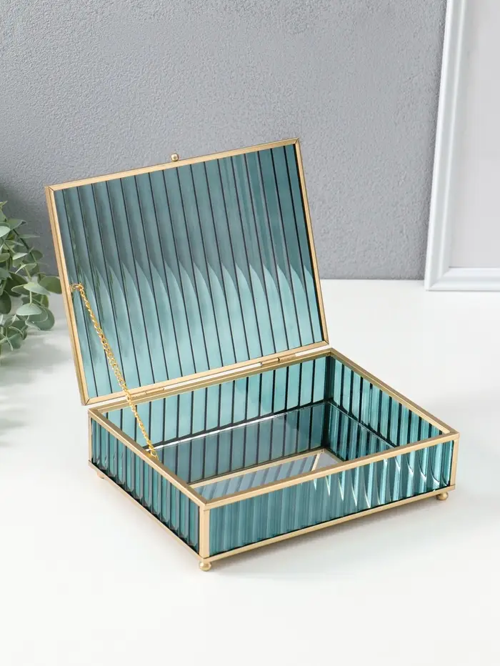 Шкатулка стекло с металлическим каркасом "Линии" голубая 17х21,5х6,5 см
