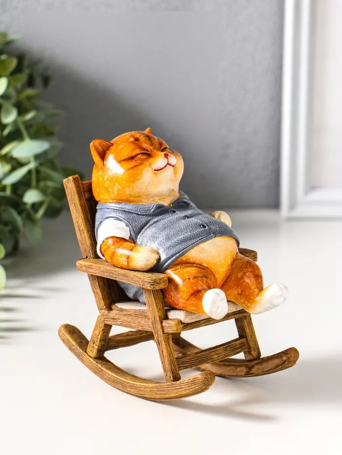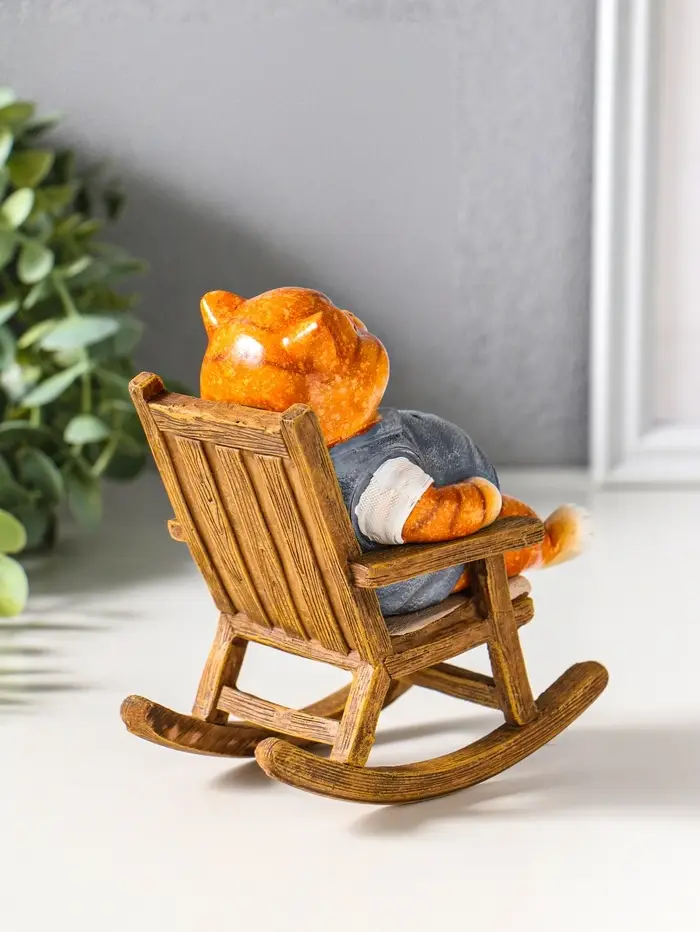 Сувенир полистоун лак "Пухлый кот в жилете, на кресле-качалке" 12х7,7х13,5 см