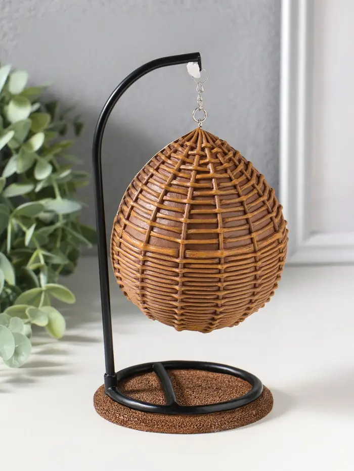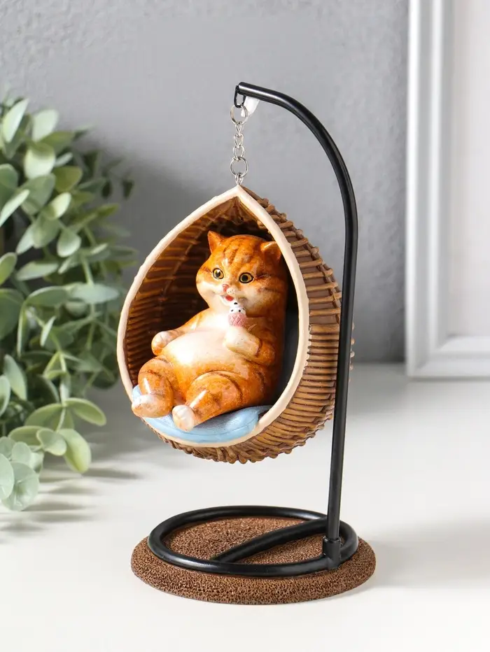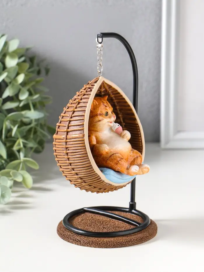 Сувенир полистоун лак "Пухлый кот ест мороженое, в кресле-качеле" 11,5х10,5х18 см