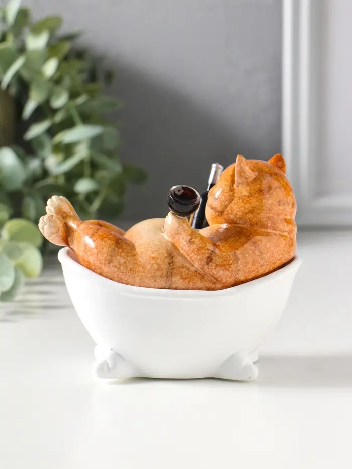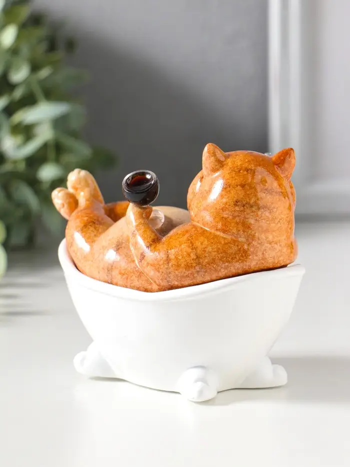 Сувенир полистоун лак "Пухлый кот лежит в ванне с бокалом" 11,5х7,7х10,5 см
