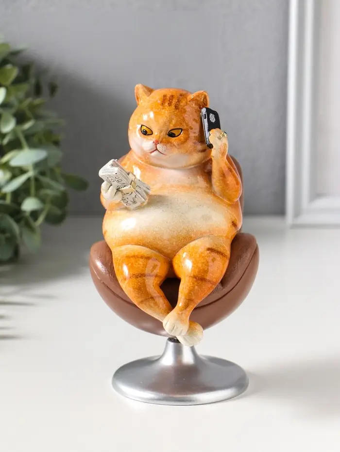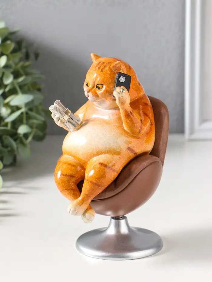 Сувенир полистоун лак "Пухлый кот - решала, в кожаном кресле" крутится 10,5х8,7х16 см