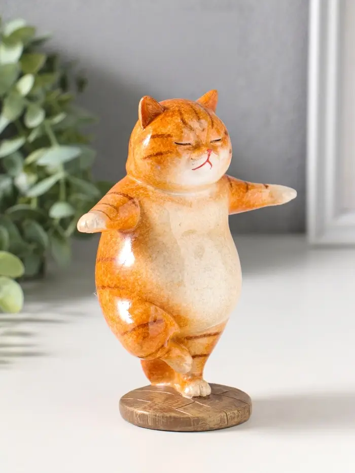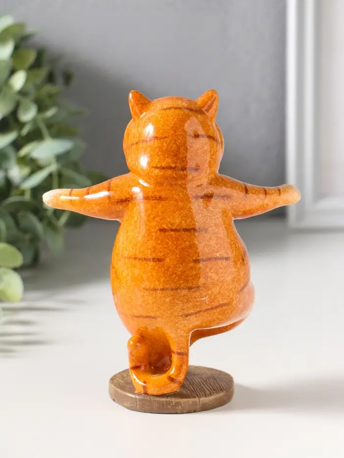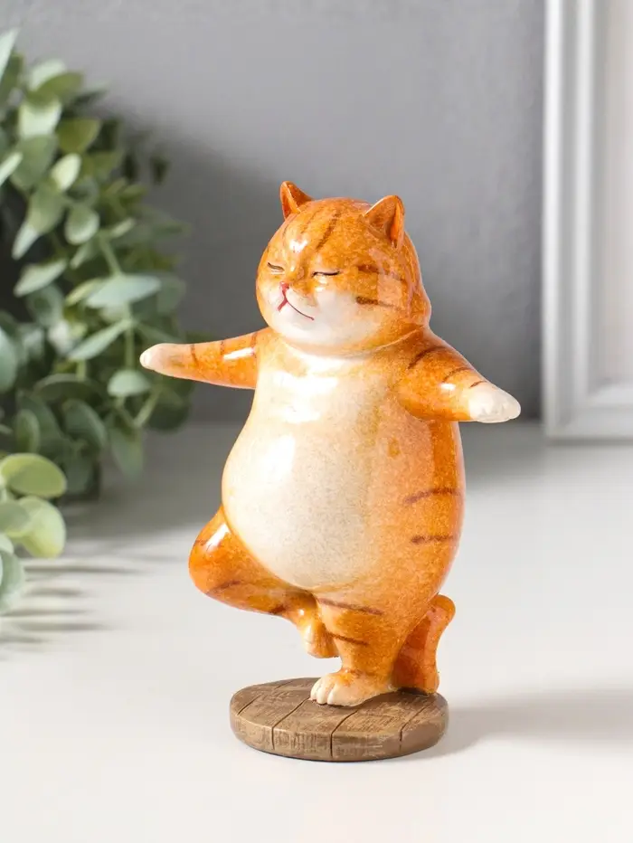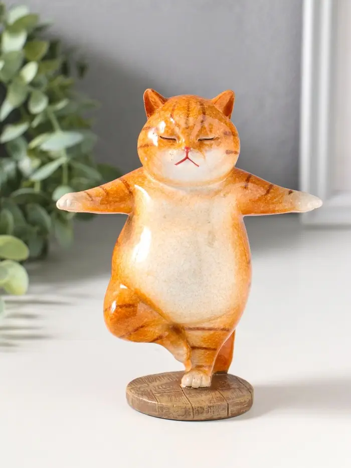 Сувенир полистоун лак "Пухлый кот-йог" 12х7х14,7 см