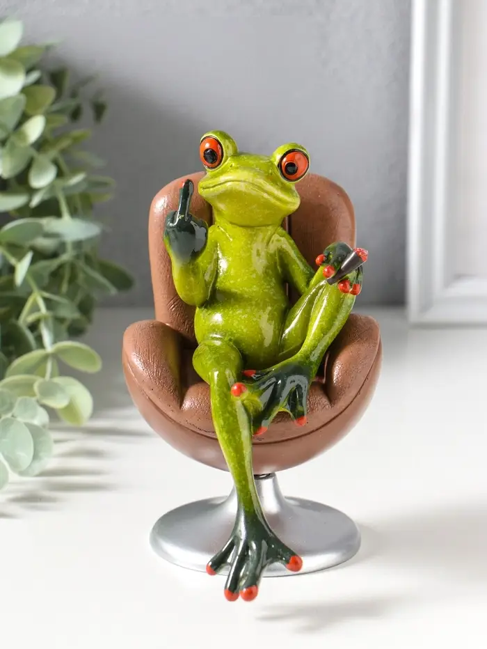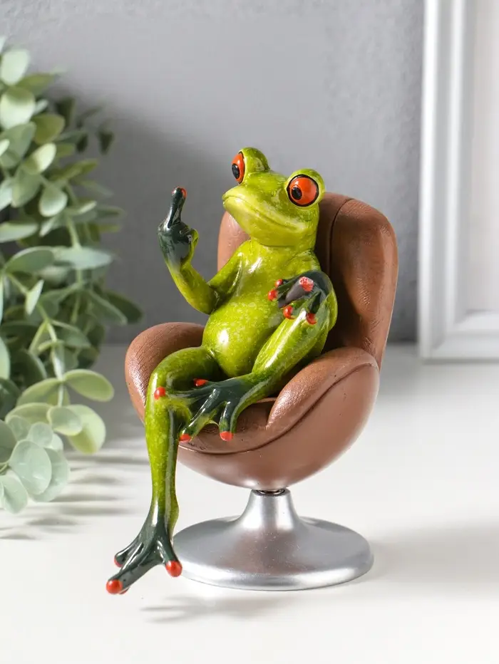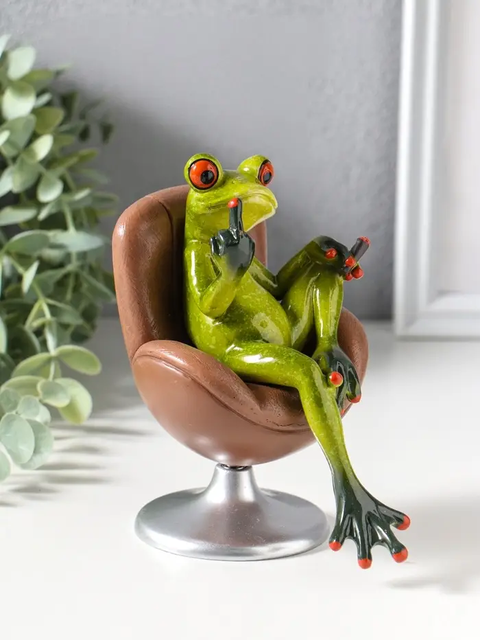 Сувенир полистоун лак "Лягуха показывает средний палец, в кресле" крутится 13х8,7х14 см