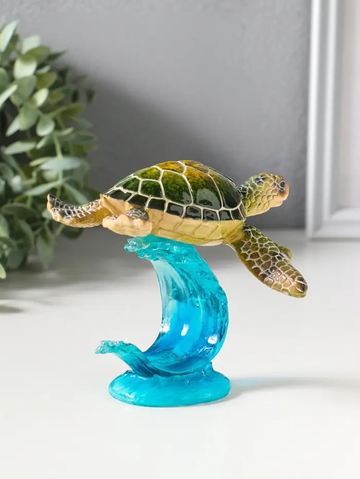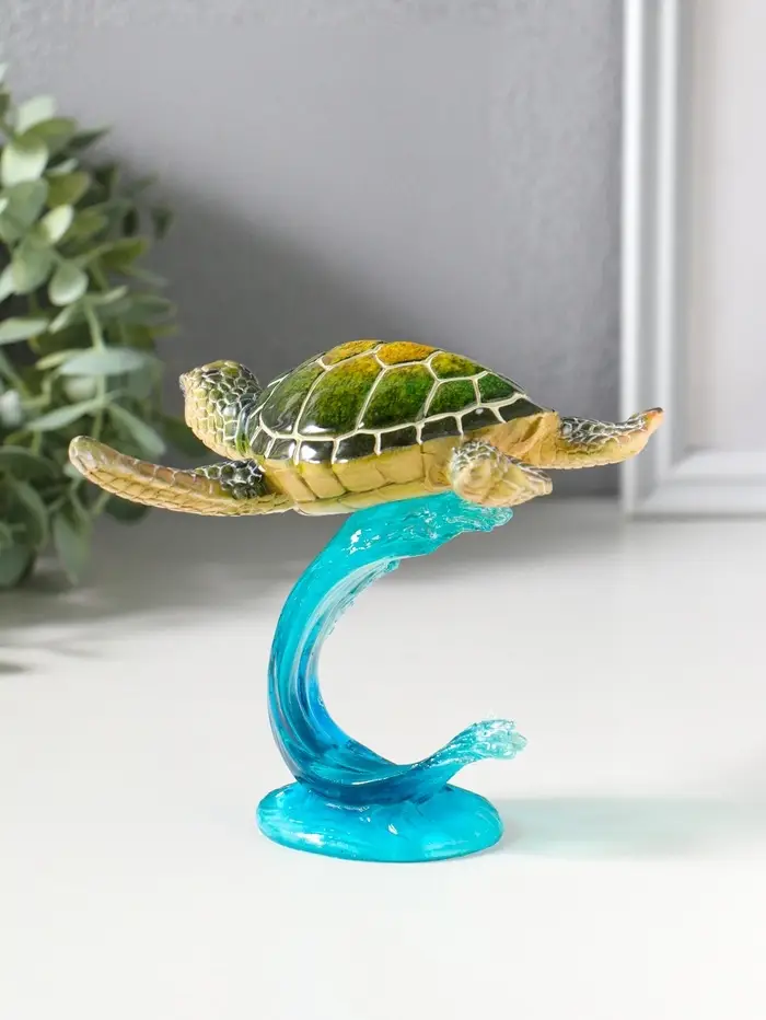Сувенир полистоун лак "Черепаха на волне" зелёный 13,3х12,3х11,6 см