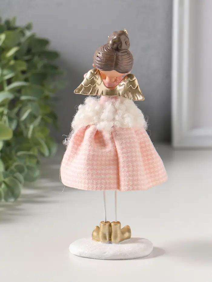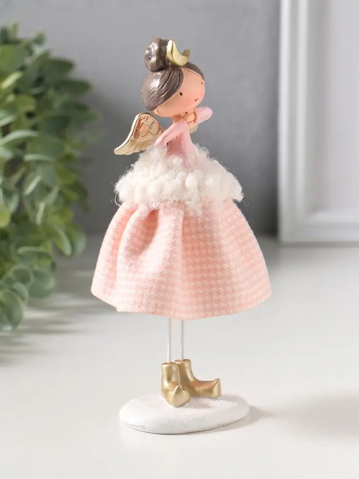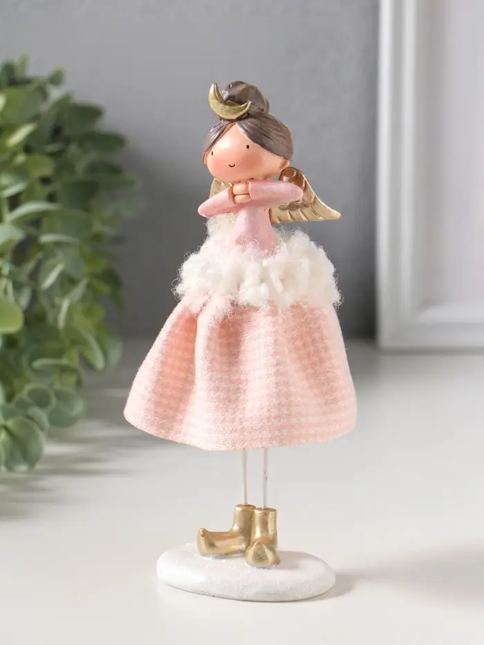 Сувенир полистоун "Ангелочек в розовом клетчатом наряде с мехом" 6х5,5х17,5 см
