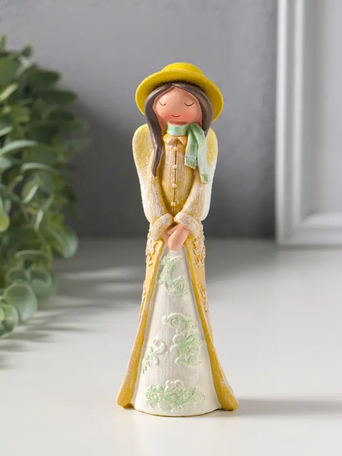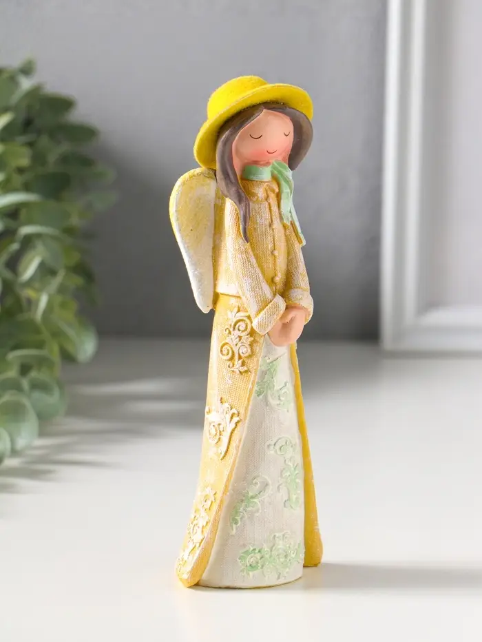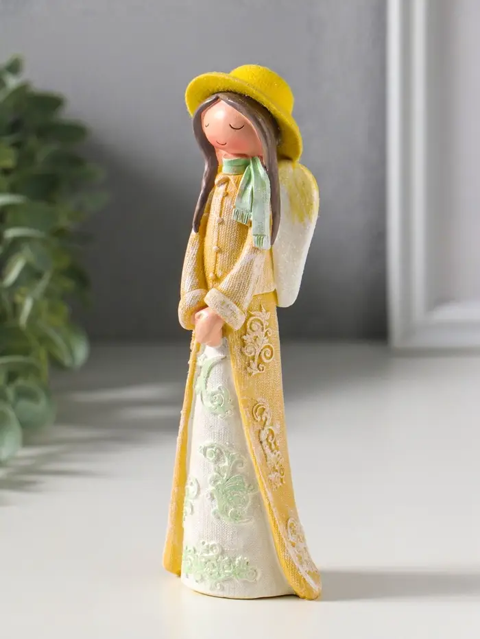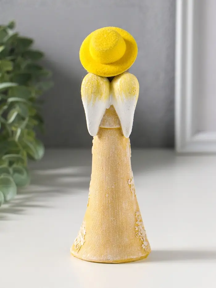 Сувенир полистоун "Малышка-ангел в желтой накидке и шляпке" 6х4,2х17 см