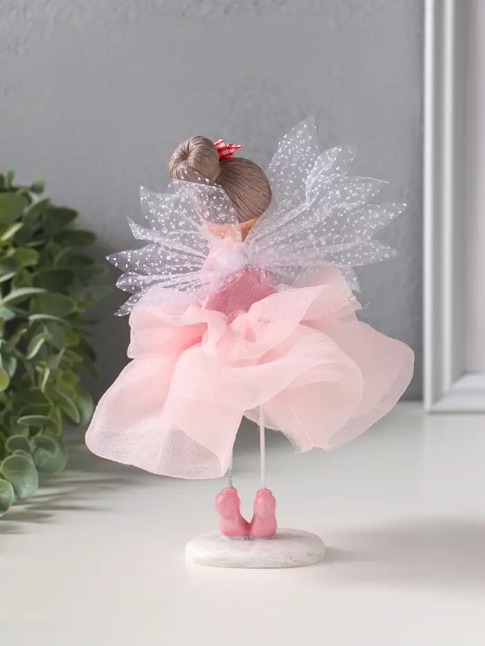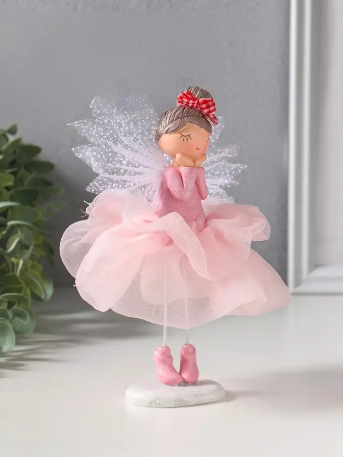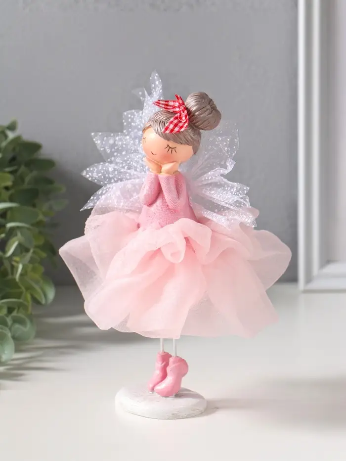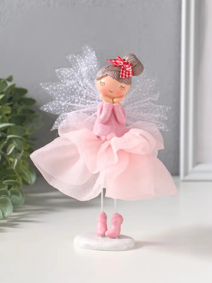 Сувенир полистоун "Малышка-фея с большим бантом в розовой юбке" 10,5х10,5х16,5 см