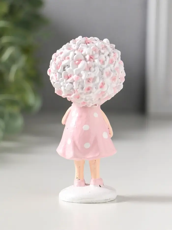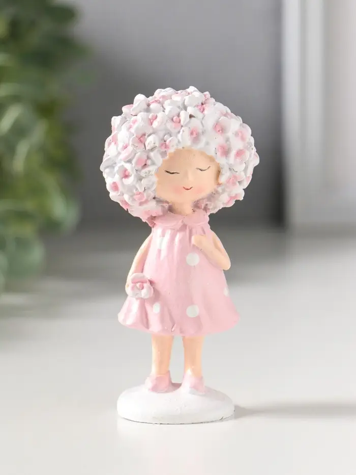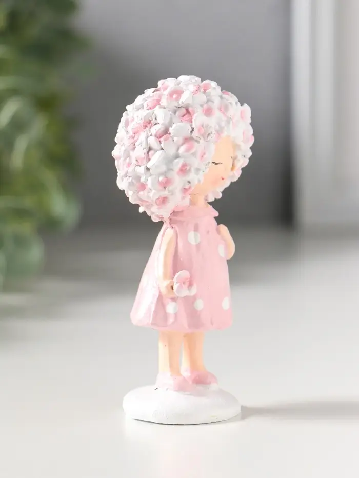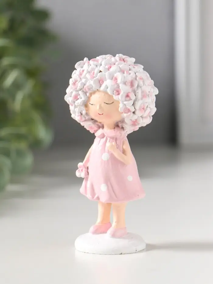 Сувенир полистоун "Малышка с цветочной шевелюрой в розовом платье" 4,5х4х9 см