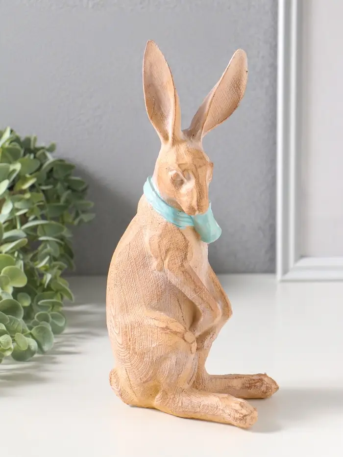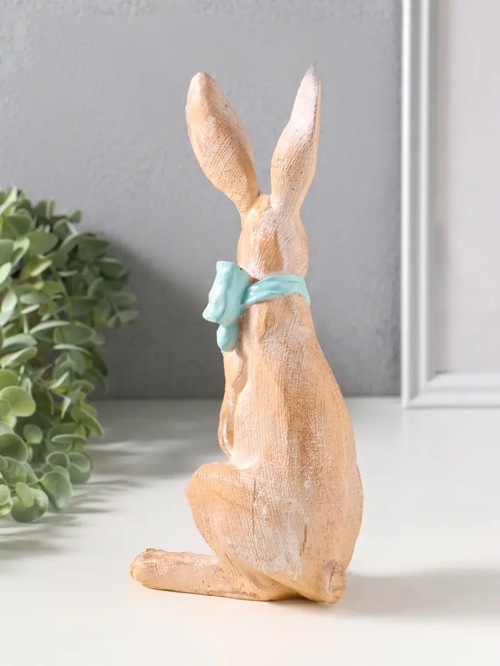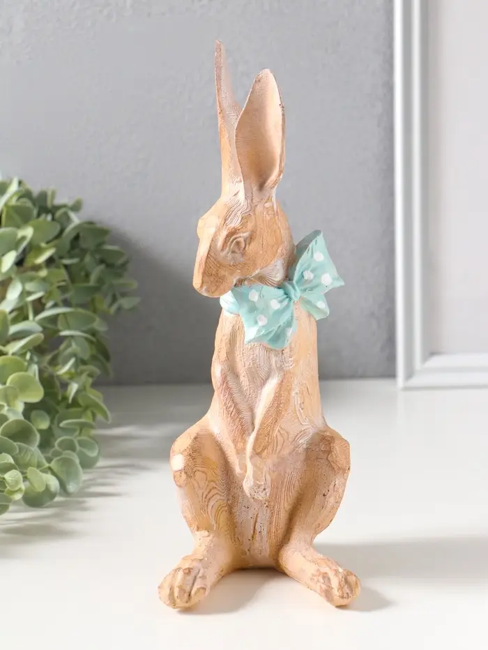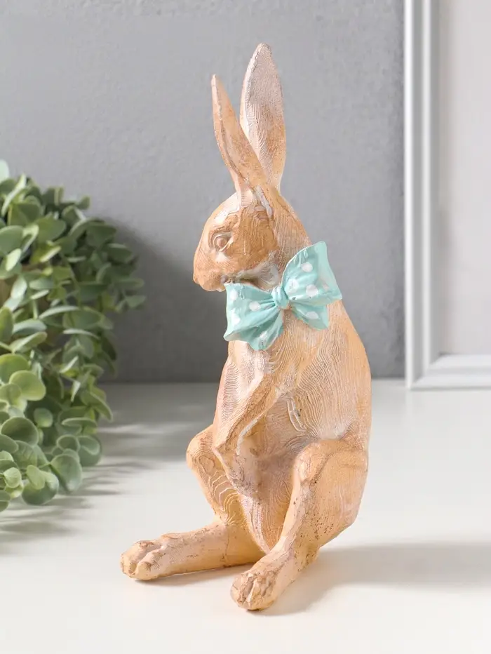 Сувенир полистоун "Заяц с большим голубым бантом в белый горох" 11,5х9х25,5 см